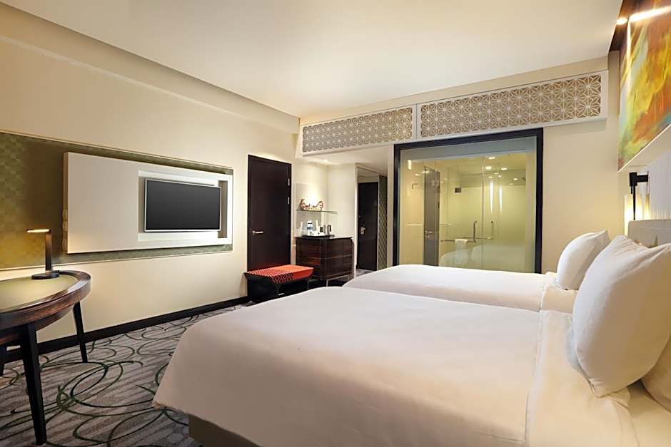 The hotel offers Premier King and Twin rooms, Deluxe Twin and King rooms, and a Junior King Suite. All rooms are non-smoking and have a room size ranging from 388 sqft to 517 sqft. The rooms can accommodate 2 adults and 3 children and are equipped with either a King, Queen, or Twin beds.