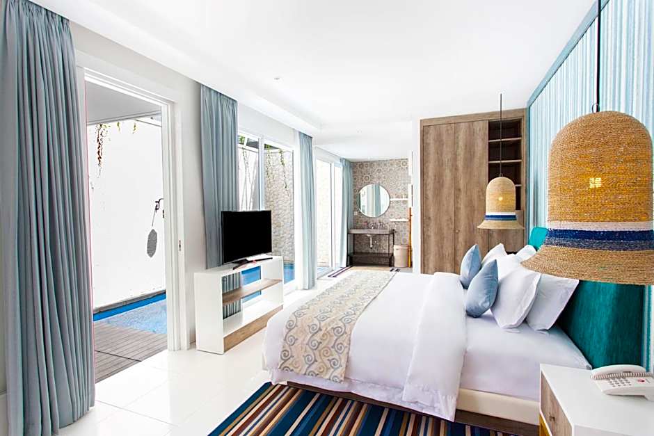 Varied accommodation options sit along the beachfront, from a Deluxe Suite to villas with private pools. A mix of Villa, 1 Bedroom, Private Pool; Deluxe Villa, 1 Bedroom, Private Pool; and Premium Suite options—including Ocean View variants—provide space and privacy, with balconies or terraces and non-smoking choices that keep sea breezes at the forefront.