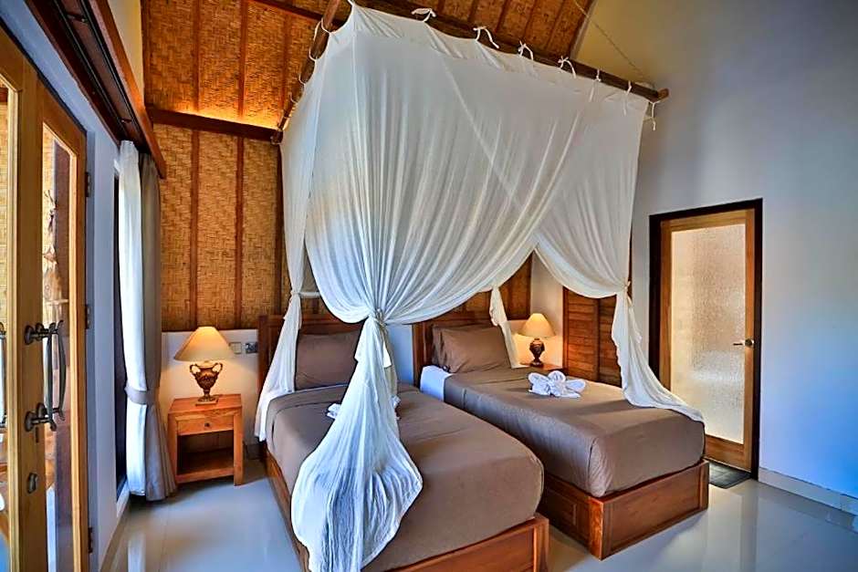 Our stay at this accommodation was absolutely wonderful. The property is very clean and authentically decorated, which gave it a special charm. We were warmly welcomed with freshly pressed watermelon juice, making us feel right at home from the start. The bungalow we stayed in was beautifully and warmly furnished, with a stunning view of the lush greenery. The open bathroom and shower added a unique and memorable touch to our experience. The staff were exceptionally friendly and went out of their way to offer helpful advice and recommendations. The hotel also provides the option to dine on-site, primarily serving traditional dishes. We tried the food and did not regret it; it was incredibly delicious. Breakfast was included and offered a variety of options such as French toast, cheese toast, Eggs Benedict, and freshly pressed juices. We would absolutely choose this accommodation again and highly recommend it to anyone looking for a comfortable and authentic stay!