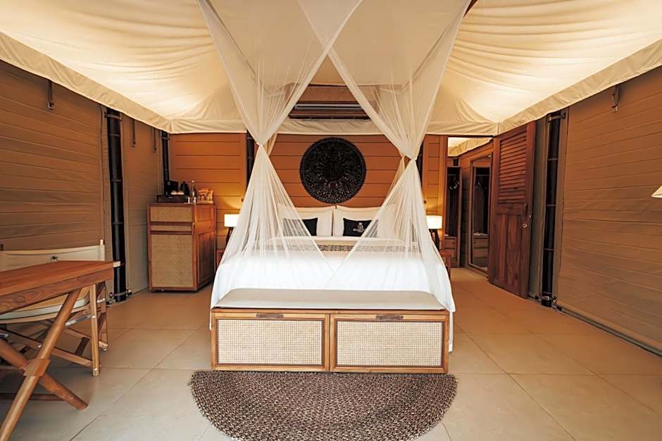 Luxury glamping with an amazing hotel atmosphere. Hands down one of the best hotels I have been to. The hotel has an infinity pool overlooking Nusa Dua beach on a cliff (Safe environment). Furthermore, amazing seating area to watch the sunset. Great place to have dinner outside (looking over the beach). The tents are amazing, they are new and feel fresh inside. Equipped with Air Conditioner inside the tents. Great services from the staff. A large pond is filled with ornamental fish to enjoy in the evening. Beautifully built hotel for all types of guests to enjoy!!.