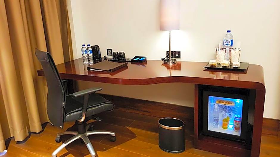 Room is fitted with a flat-screen cable TV, mini-bar and tea/coffee-making facilities.