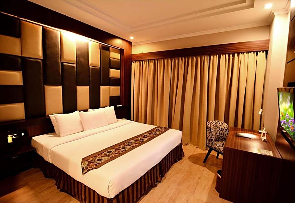 At Angkasa Garden Hotel Pekanbaru, guests can choose from suites, deluxe rooms, and superior rooms. Occupancy ranges from single to quadruple, with smoking and non-smoking options available. Bed sizes include twin, queen, and king, with room sizes varying accordingly.