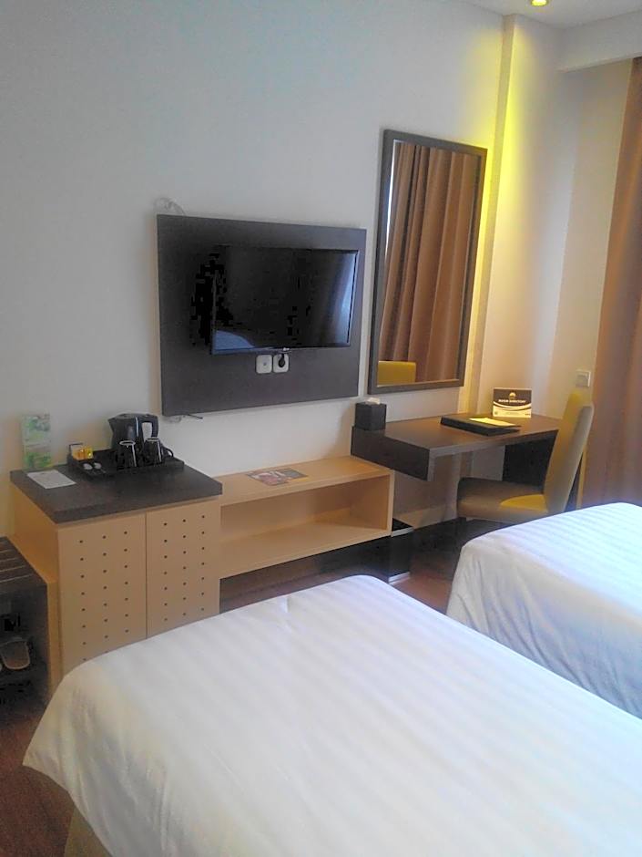 This twin room can accommodate up to 2 adults and 1 child under 3 years old. It also has air conditioning, mini-bar and seating area.