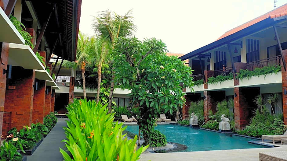 Located on the main road but set back so there is no traffic noise. Our flight was delayed so we arrived very late. Bayu at reception greeted us with a happy smile and explained all we needed to know for a super comfortable stay. Comfy bed. Breakfast is served at the pub in front. Eggs to order, toast and spread, fruit, tea, coffee. Just minutes walk to the beach boardwalk, night market, cafes, and the new shopping mall. Bayu was very helpful with organising a day tour and fast boat to Lombok. Arni and all the staff were always happy and helpful. Fabulous pool and 2 for 1 cocktails! Our 5 day stay was exceptional and we will return.