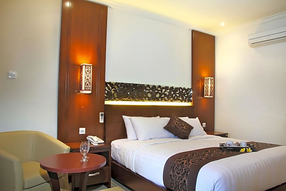 Balinese style Hotel located in the quieter southern end of Sanur. Exceeded my anticipated expectation. It was larger than I imagined with nice pool and gardens. It is not a resort as such, but provides most of the comforts required --- a very good 3 star in my opinion. Plenty of restaurants etc. out on the street and an excellent small supermarket about 300 metres away. About a 5 - 10 minute walk to the beach depending on which route you take. The room was comfortable with A/C and a fridge. TV with a few English speaking channels a bonus. I recommend and would stay here again