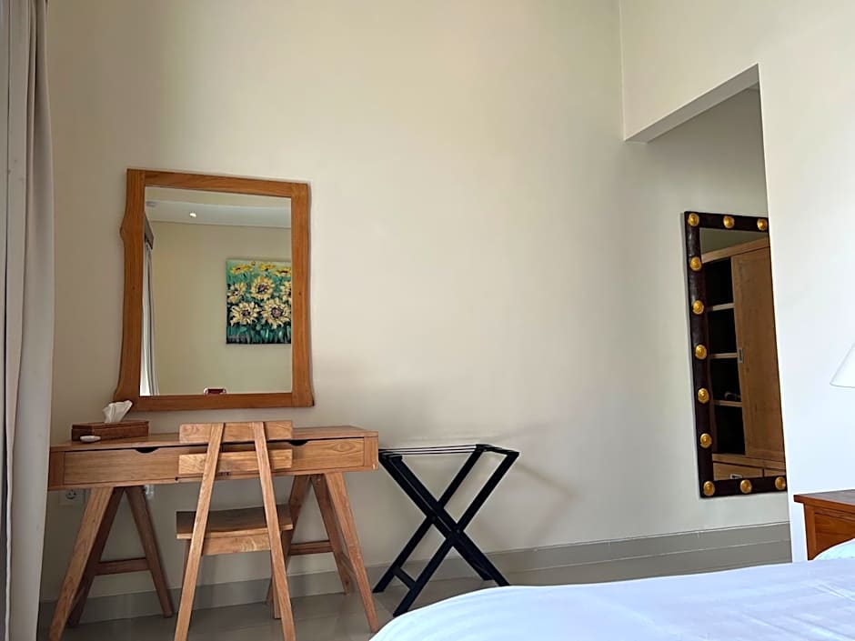 Serene and stylish, Kesari Haven Villa C in Sanur blends private luxury with tropical ease. A private pool offers secluded swims, complemented by free outdoor pool access for extra refreshment. A private entrance opens to a sun-soaked terrace with garden views, while a kitchenette with kitchenware invites casual meals. Inside, air conditioning and a sun deck keep comfort high, rounding out a tranquil retreat.