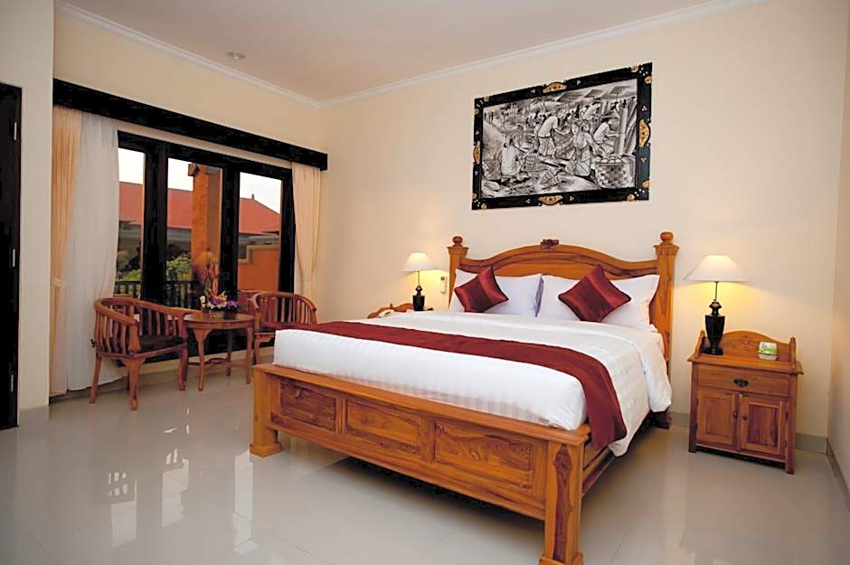The standard room is a room with traditional Balinese-classic style furniture that featuring a private balcony. It is equipped with air conditioning, a shower over the bathtub, a water heater, mini refrigerator, and various facilities and amenities. Located on the first and second floors, some rooms offer a garden view, while others have a pool view.