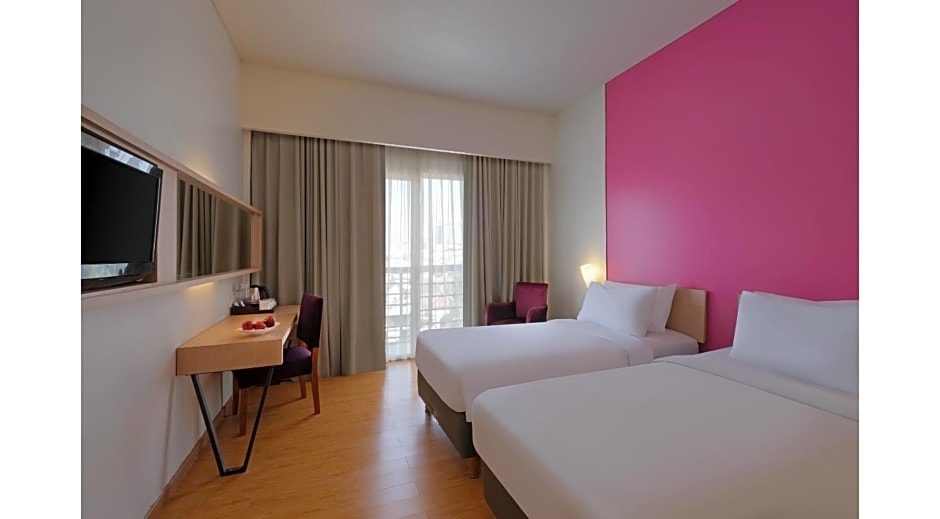 Quest Hotel Simpang Lima - Semarang by ASTON offers Deluxe Double or Twin Rooms and Executive Rooms. The Deluxe Double or Twin Rooms have a room size of 280 sqft and do not allow smoking. They can accommodate 2 adults and 1 child, with 1 double bed and 2 twin beds available. The Executive Rooms have a larger room size of 452 sqft and also do not allow smoking. They can accommodate 2 adults and 1 child, with 1 queen-size bed provided.