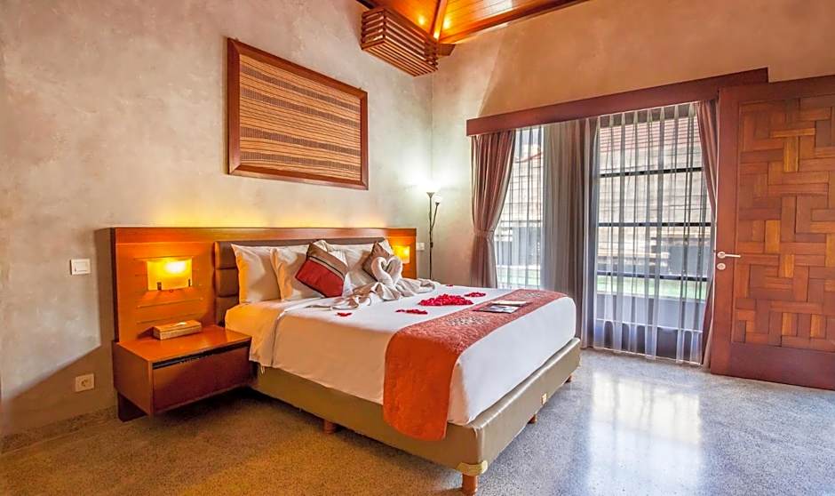 This one-bedroom villa features a well equipped kitchen, a dining area and a living area with plush sofas and a flat-screen satellite TV. Air-conditioned bedroom has a seating area, personal safe and an private bathroom with bathrobes, towels and free bath amenities. Guests enjoy: - Return airport transfer - One-time Balinesse massage for 2 people - One-time romantic dinner - Honeymoon setup on the bed and bathtub - Small honeymoon cake - Daily replenished mini-bar - Free scheduled drop-off to Seminyak area