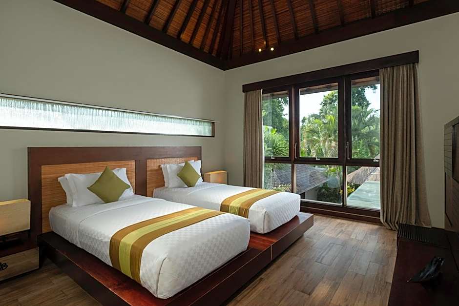 Spacious 2-bedroom villa with a private pool and kitchen. The second bedroom features a Hollywood twin bed. Bathroom has a bathtub.