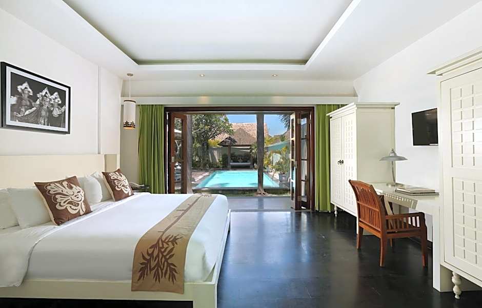Perfect villa with lots of room! The doors between the bedroom, lounge and outside are able to be opened completely for an alfresco experience, or closed for air conditioning. The bathroom is spacious and gorgeous. The villa was very clean on arrival, and cleaned well each day. There is a smart TV in the lounge room and bedroom. The kitchen is well equipped should you wish to cook. Great location - only a 10 minute walk to Seminyak square. A number of convenience stores within metres. Lovely staff - staff were attentive and assisted with our needs, followed up on requests and ensured we were well looked after.