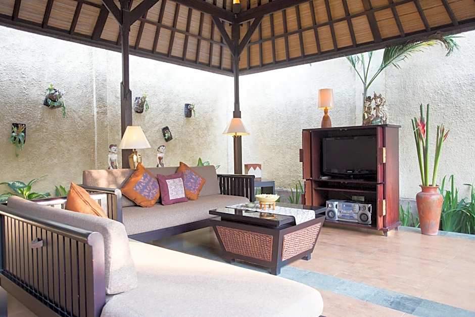 This suite villa features a private outdoor swimming pool, a kitchenette and a separate living area. The bedroom comes with air conditioning and flat screen TV with cable channels and outdoor shower.