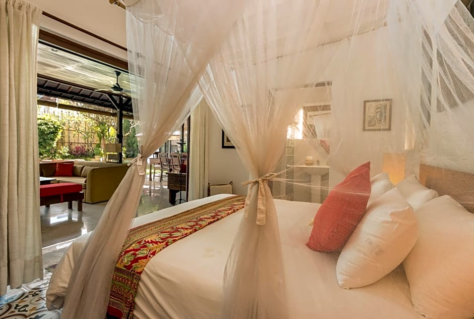 This superbly spacious villa comes with a private outdoor swimming pool, separate semi-open living area with flat-screen satellite TV, dining area, and fully-equipped kitchen. Each bedroom is air-conditioned and fitted with a wardrobe. The villa has 4 private bathrooms including shower facility and free toiletries. Fresh towels and bed linens are also provided.
