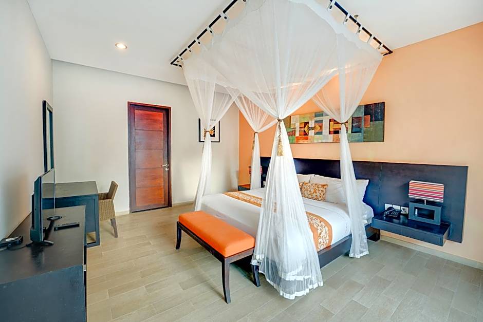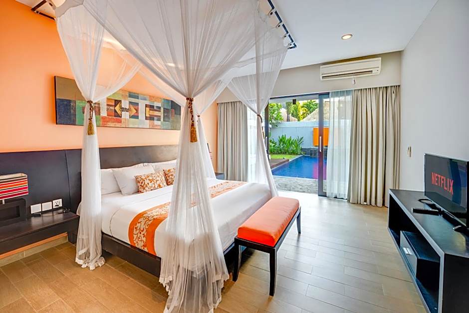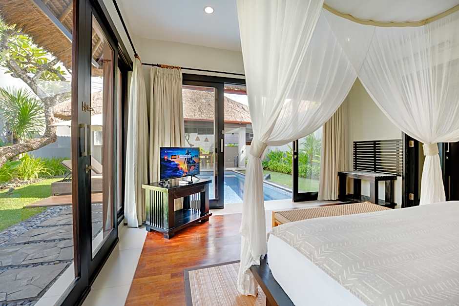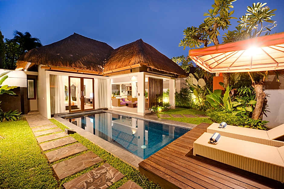This features a private pool with lounge chairs, kitchenette, living room and butler service. Guests enjoy: - Welcome drinks and chilled towel upon arrival - Flower arrangement and fresh fruit upon arrival - Daily breakfast - WiFi access - Scheduled shuttle service within Seminyak and Kuta areas - 30% discount on spa and 10% discount for food - One-time, 2 small beer bottles - One-time afternoon tea for minimum stay 3 nights