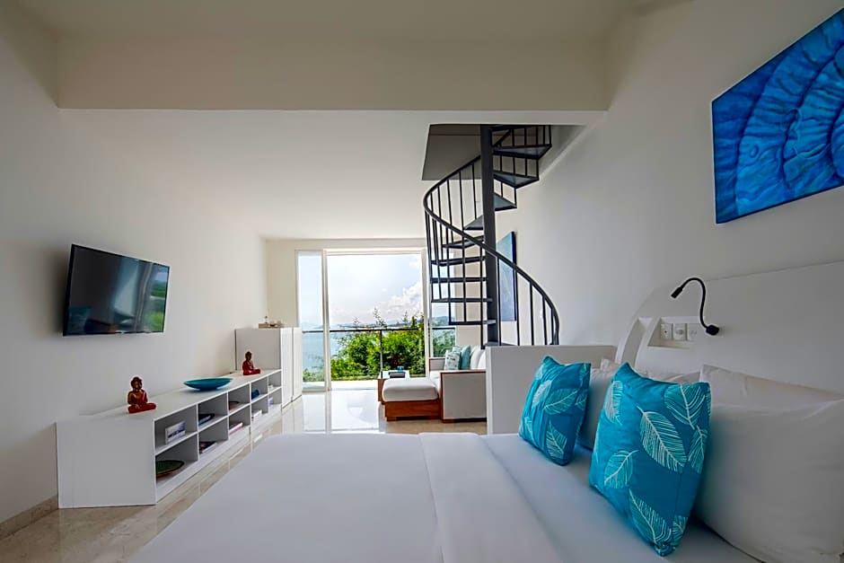 This suite offers a pool with a view. This spacious suite consists of 1 living room, 1 separate bedroom and 1 bathroom with a shower and free toiletries. The air-conditioned suite provides a flat-screen TV, a private entrance, a tea and coffee maker, a seating area as well as sea views. The unit offers 1 bed.