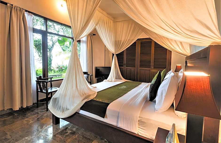 Enjoying views of the rice terrace and gardens, this spacious Balinese-style villa comes with a living area, dining area and flat-screen TV. Private bathroom has cold and hot-water showers as well as free bath amenities.