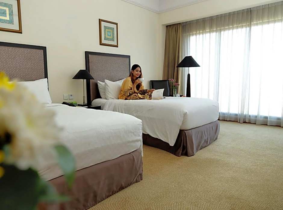 At Bumi Surabaya City Resort, guests can choose from Classic Rooms which can accommodate 2 adults and 1 child in a TwinDouble setup. The room size is 463 sqft with a Queen size bed and two Twin beds, and smoking is not allowed.