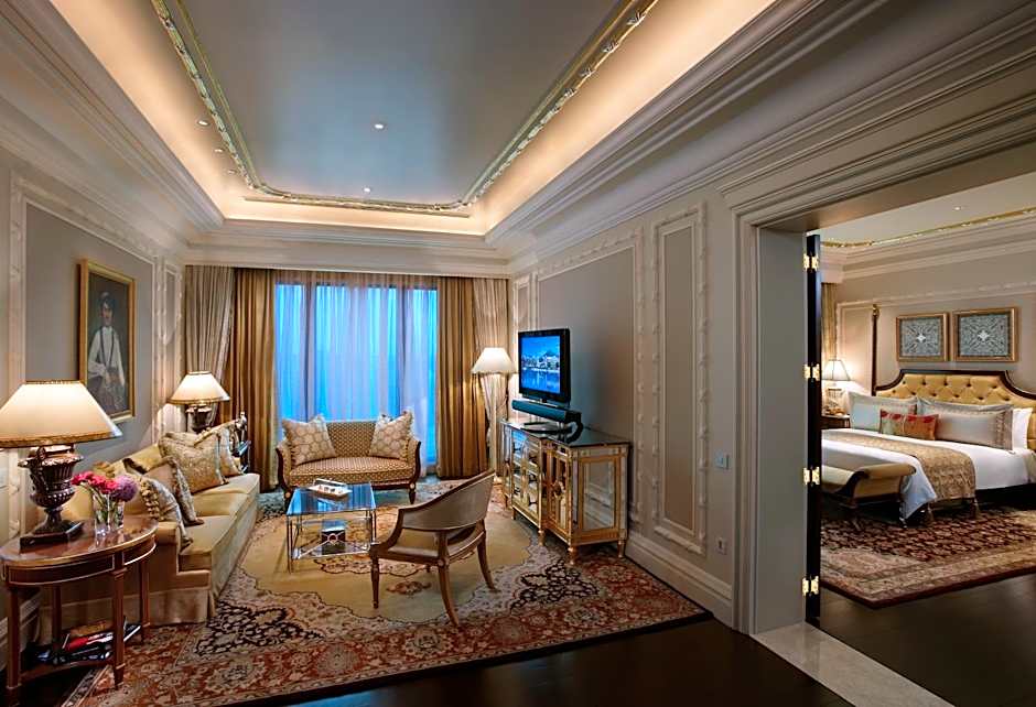 This suite has gold leaf ceilings, intricate wood work, pure silver and semi precious stones art pieces, deep toned rich tapestry are complimented with the state-of-the-art functionalities and exclusive facilities. An eight-bay suite comes with amenities like a complimentary airport transfers in our luxurious BMW fleet, 24-hour butler service, Tishya by The Leela bath amenities, private gymnasium, two separate living rooms with a powder room, private study room, private dining room that seats 12 guests, 24-hour in-room dining, fully-functional butler’s pantry, a separate bedroom with a spacious walk-in wardrobe and the sprawling bathroom, spa bath, a rain shower head and a couple spa suite. This suite comes with an option of an additional bedroom to accommodate more guests. Keeping in mind the need for privacy and enhanced security, the suite is equipped with bulletproof glass.