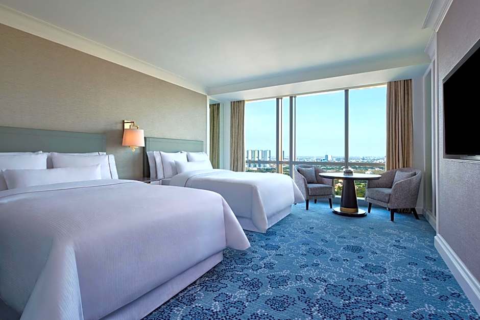 This double room has air conditioning, tea/coffee maker and soundproofing. Guest can have a complimentary afternoon tea and an evening cocktail at Westin Club Lounge. The room also offers: - WestinWORKOUT® Fitness Studio, featuring cardiovascular equipment, Gear Lending, and TRX workouts - Access to Access to Westin Kids Club - Access to Westin Olympic Pool, Lagoon Pool, and Kids Pool - 20% OFF on à la carte food & beverage purchases at Magnolia Restaurant and Sky Lounge. Alcohol not included - Special rate for International Grand Buffet at Magnolia Restaurant (all-you-can-eat) - Complimentary high-speed Wi-Fi internet