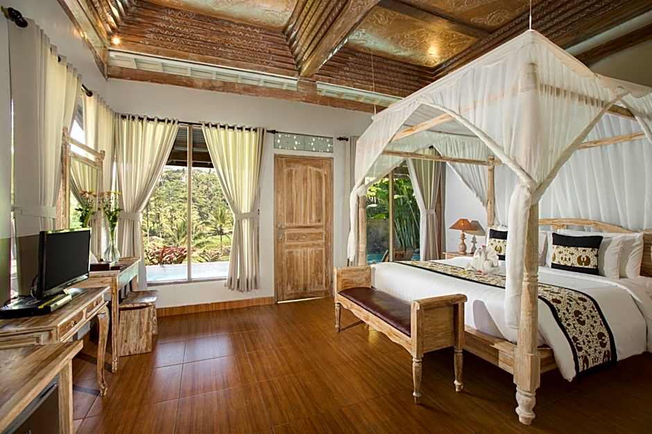 This air conditioned villa has a private pool, telephone and terrace. Also has a mosquito net and mini-bar. Private bathroom comes with a shower, hairdryer and free toiletries.