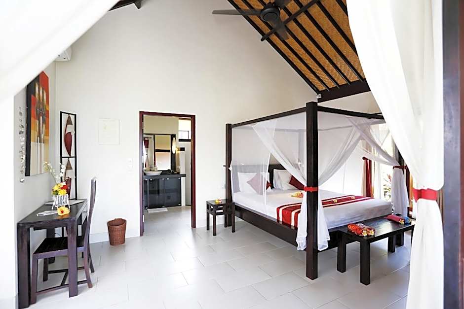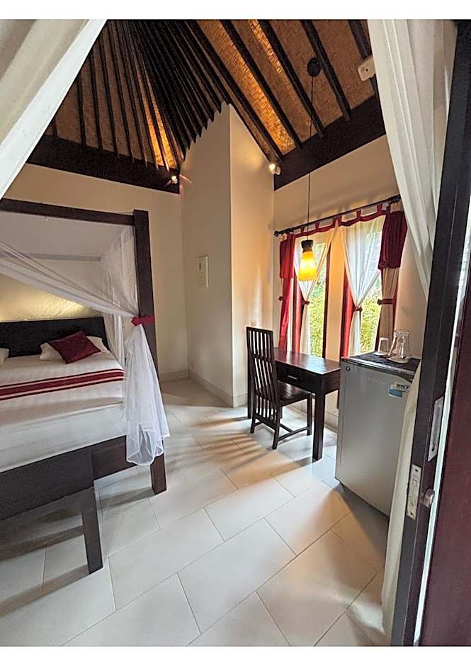 Green and natural setting right near the beach. Hugh rain shower rose in bathroom very Balinese style and beautifully structured. The private seating area outside the room affords privacy and promotes great relaxation enjoying being outside.