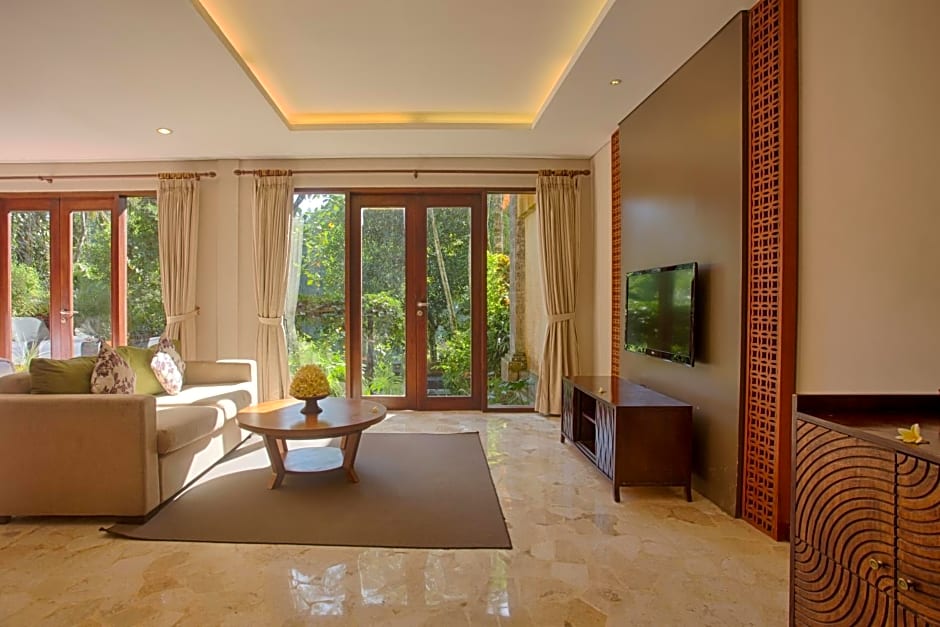 This villa features a living and dining room, CD/DVD player and a kitchenette. The special offer includes: - Welcome drink upon arrival - Welcome fruit upon arrival - Welcome massage (15 minutes) upon arrival at Spa House for 2 adults - Special flower arrangement in villa - One time massage 60 minute and facial treatment 60 minute for 2 adults - One-time romantic candle light dinner for 2 adults - Free guided river tour to Anahata Oasis - Free cycling for adult - Daily breakfast at the restaurant for 2 adults - Daily afternoon tea/coffee and snacks for 2 adults - Free yoga lesson on weekends for 2 adults - Free shuttle service to downtown Ubud Market based on schedule - Return airport transfer service