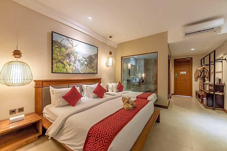 Anumana Ubud Hotel offers a variety of rooms, including Best Deal Superior Room with Lagoon View, Anumana Suite with Plunge Pool, Connecting Superior Room with Lagoon View, and more. The rooms can accommodate 3 to 4 adults and 1 to 2 children and feature King-size, Queen-size, and Twin beds. Smoking is not allowed in any of the rooms.