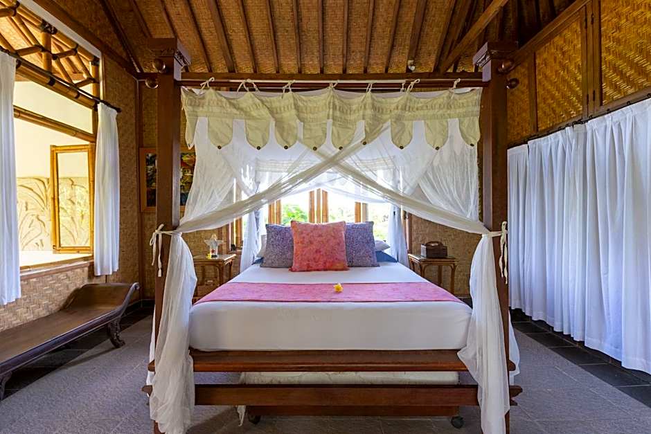 This is the most wonderful place, a real hidden gem. We rented the bamboo villa: a spacious and cosy house, with half open windows. So you have constant fresh air and sleep with the sounds of nature. The garden is amazing, with countless tropical plants everywhere. You wake up early by the birds an gecko’s. There are only 3 houses for rent on the property, so it is very quiet and private. We absolutely loved being here. Kadek and Putuh are incredibly sweet and love to help you. Every day they serve something different for breakfast. And all of it was fantastic. They know several drivers and have their own brochure with tips for activities. We did a really cool and interesting jungle walk at Alit Trekking. And Mus, our driver, also helped making this holiday the best ever. Thank you all so much! Nele and Erik.