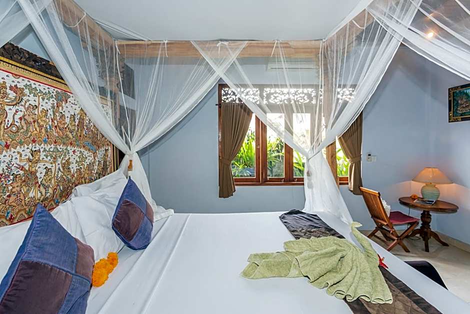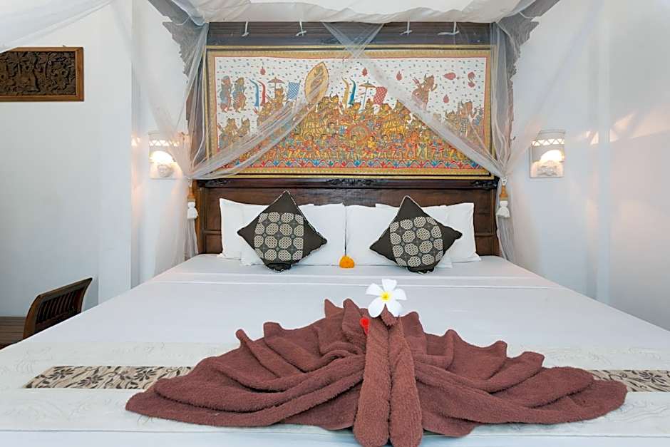 This fan-cooled room includes a 4-poster bed with a mosquito net. It also has a private terrace or balcony with views of the mountain and rice fields. Private bathroom comes with both a shower and a bathtub.