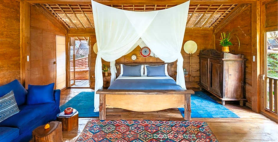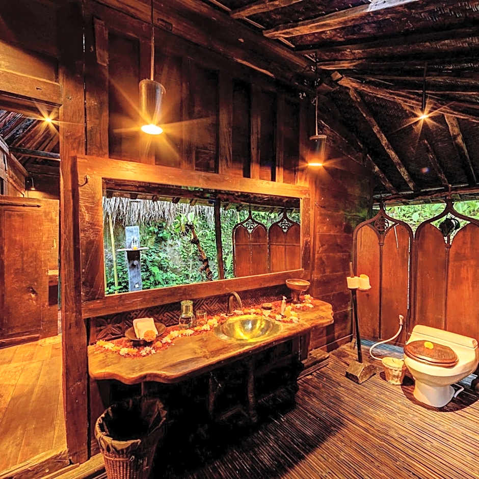 This large and lovely wooden house offers a picturesque view of the famed Sayan Ridge. The house features a terrace with seating area and a deck where guests can enjoy a morning private yoga session or simply relax during lazy afternoon while listening to the calming sound of the Ayung River. Guests can also enjoy a meal at the outdoor dining area. The air-conditioned bedroom features a high ceiling and a canopied four-poster bed. There is also a spacious private bathroom with shower facility and free toiletries. Mini-bar, fresh towels and linen are provided in the room. Jawa Lama means “old java,” and is located in a shady alcove above the cliff, on a secluded nook looking up at the Treehouse. Walk outside to a spacious wooden deck perfect for yoga or simply relaxing. Jawa Lama is a comforting homage to the bygone eras of Southeast Asia as well as a stunning nod to Javanese nobility. Perfect as a honeymoon suite for couples or simply to indulge in this rare, scenic home away from home.