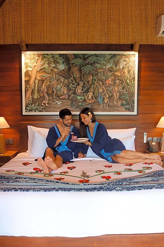 On-site dining centers the experience with Bee Cafe, serving Indonesian and International cuisines in settings that range from FamilyFriendly to Traditional, Modern, and Romantic. A bar awaits for sunset sips, while a sun deck overlooking the garden provides a perfect place to unwind after a day of wandering through Ubud’s enchanting streets and markets.