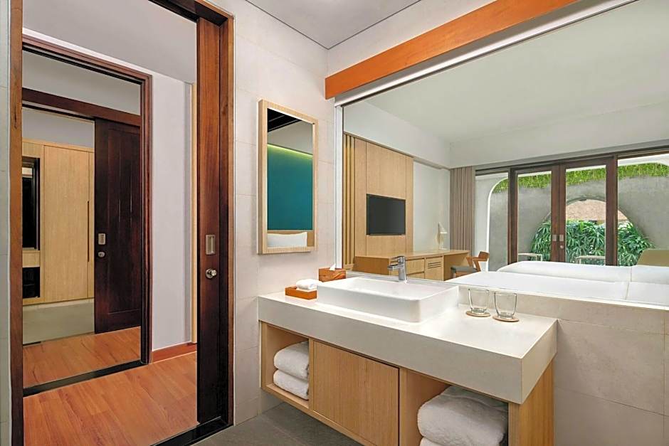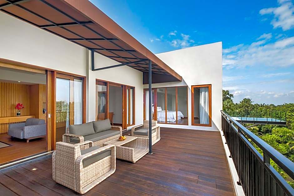 Punyan Suite Room, 1 Bedroom Suite, 1 King, Garden view, Balcony with Free Mini Bar, Daily Shuttle to Monkey Forest, Daily Yoga, Free Bike to borrow,  Free Family Activity and 24 Hour access to Motion Fitness Center in Element Bali Ubud