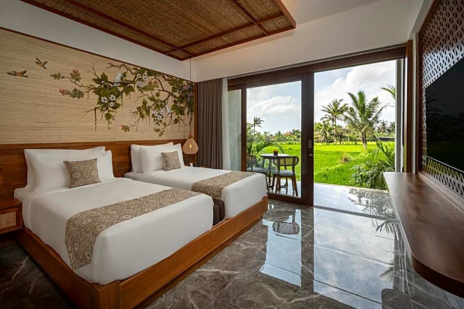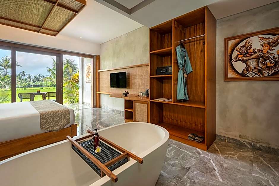 What can I honestly say about this place? I've travelled and stayed at many places around the world, but this was BY FAR, the most peaceful and beautiful place I've ever stayed at. Nestled about 20 mins from Ubud Centre, which provided the perfect balance that I needed. I was originally only meant to stay 4 nights, and left after 12 days because I fell that much in love with it. The place itself, very clean, and newer than most around town. The restaurant provides delicious food and drink menu and all day breakfast option as well. They also include free afternoon tea as well with selection of tea and snacks/appetizers to go with. The room was amazing!!!! Free inclusions in the mini bar as well. Spotless, tranquil, comfiest bed too! bath tub in the middle which was sooo delightful to just relax and listen to music or watch a movie from. The verandah offers spectacular views of the gorgeous, green and lush surroundings and the pool area, offers beautiful views too! Very relaxing! What makes this place so unique and special though, is the people and staff here. Literally. I'm crying writing this because their kindness, generosity, care and consideration is above and beyond many places ive experienced. My father actually passed back in Australia during my earlier days staying here and the staff not only shed tears of compassion when they found out, but also sweetly gifted me some beautiful condolence flowers that just touched my heart! They really didn't have to at all, but they did. And that meant the world to me as I was alone, by myself during this time as well, far from home and familiarity. It's because of their kindness and hospitality and making sure I was okay, that I chose to extend further and allow myself the space to grieve and heal in what I call, a little slice of heaven on Earth. Ubud means "Medicine" and that's exactly what it is.. medicine for the soul.