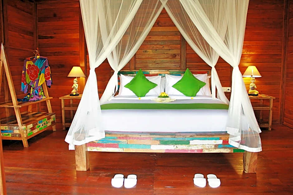 Galang Hari Villa offers a range of rooms including one-bedroom villas and suites with balconies. The rooms are non-smoking and can accommodate two adults. The rooms feature a king-size bed and vary in size from 323 sqft to 646 sqft.