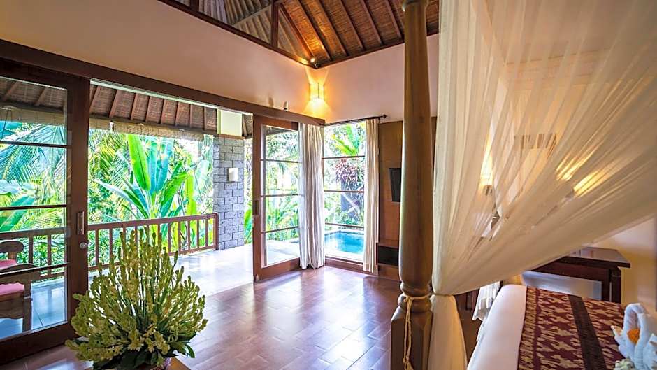 Kori Ubud Resort, Restaurant & Spa is a 4-star retreat in Ubud, Indonesia, just 1,3mi from the city center. The property sits along Raya Sanggingan Road, 18 Tjampuhan - Ubud Gianyar Bali, offering a serene base for exploring Bali's cultural heart. Breakfast is offered onsite to start mornings with local flavors and a touch of luxury.