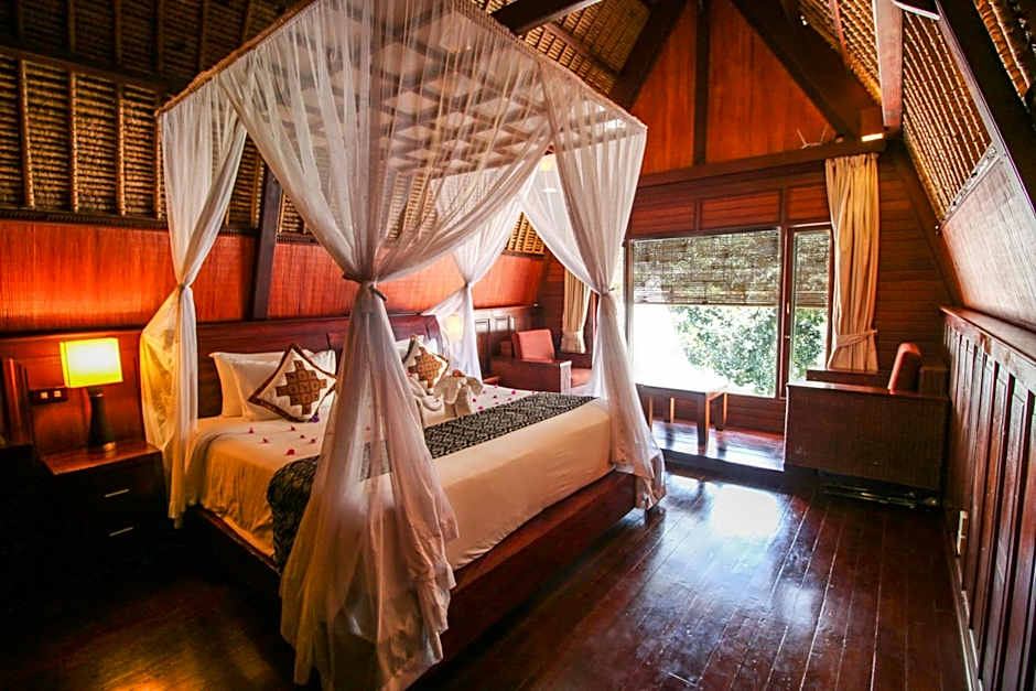 Offering panoramic views of the valley, this duplex villa features traditional Balinese interiors. Modern facilities include air conditioning and a flat-screen TV.