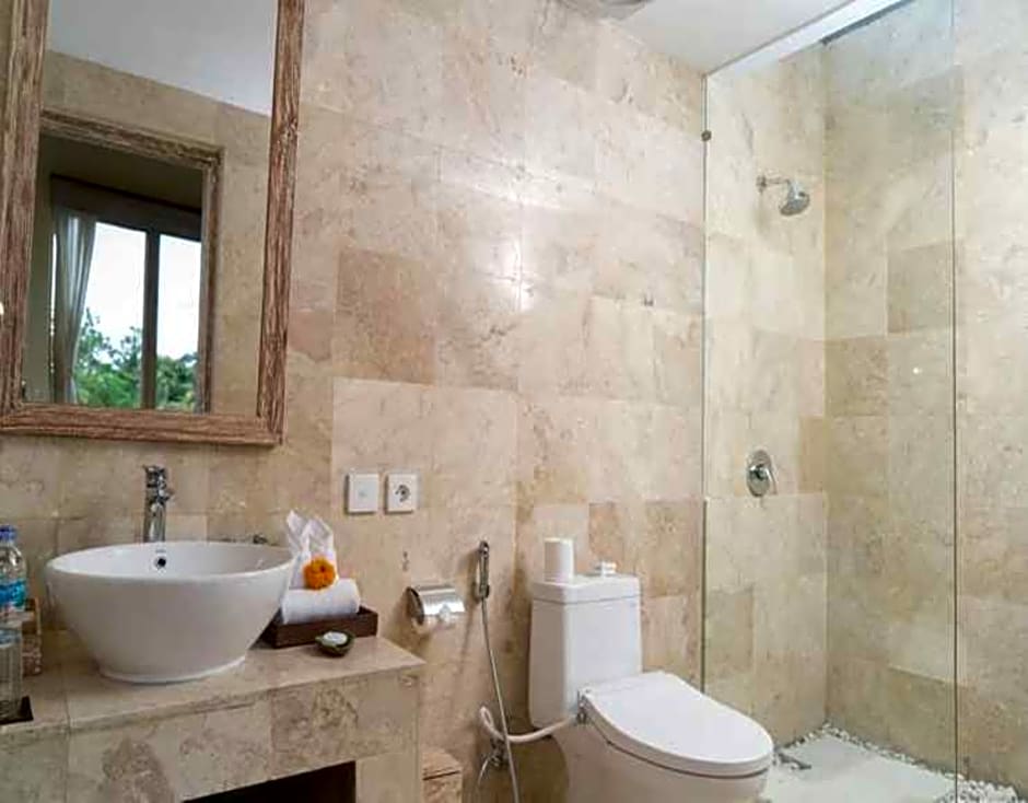Grand Suite Room is named for the Rice Terrace Suite located on the upper floor. There are 9 units of this fresh and inviting modern Balinese interior designed Rice Terrace Suite wider view to the rice paddy field area and lush tropical garden. The rooms offer comfort with spacious size of 50 sqm. A full-length glass window provides natural light in the entire space. A balcony is provided to enjoy the nature.