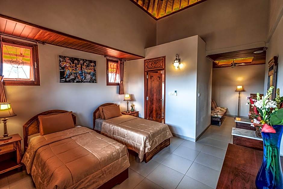 Everything about the property was lovely. The grounds are well kept, full of trees and flowers and delightful peaceful corners. The rooms (we were in the studio) were well appointed and clean and we liked the Balinese style.