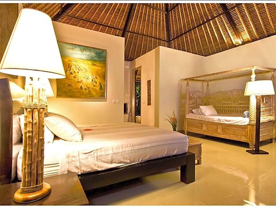Puri Darma Agung Villa offers Lotus One-Bedroom Suite, a non-smoking suite accommodating 2 adults in a Queen size bed, with a room size of 538 sqft.