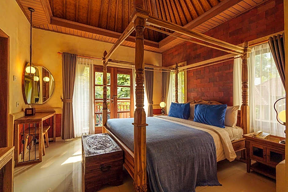 A room choice for a solo traveler, a group of travelers, and couples. Our Deluxe Room comes in Classic Balinese style, characterized with sleek brick walls and strips of bamboo ceilings. A spacious private bathroom available in half open-air style with a sunken bathtub and shower.