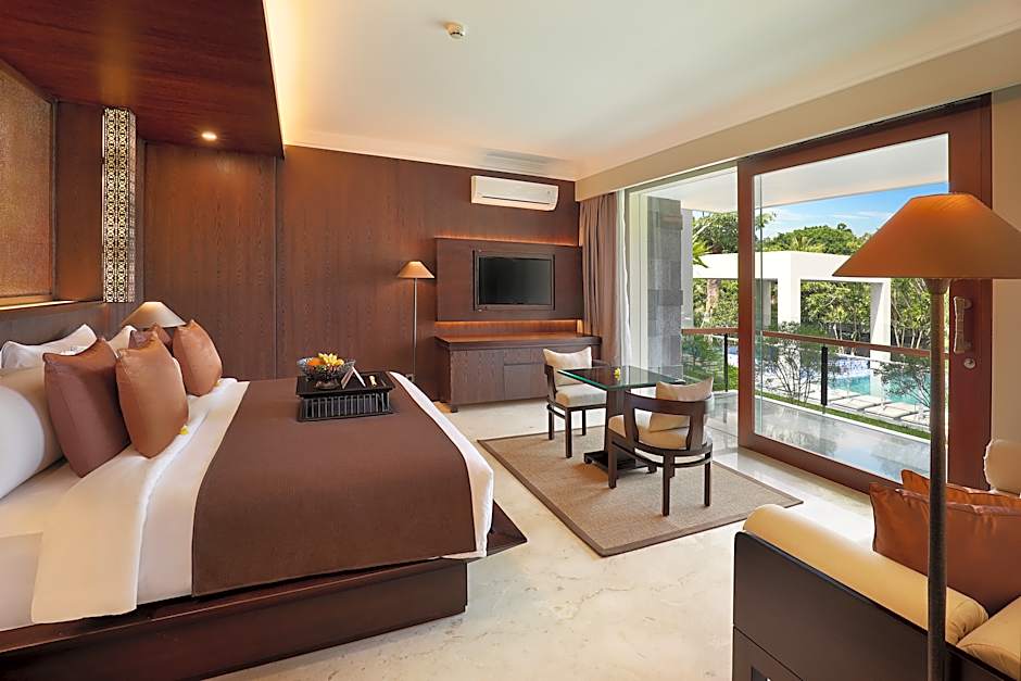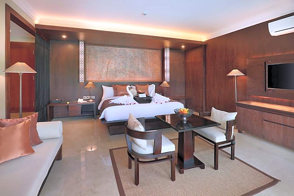 The hotel has an on-site restaurant called Shrida that offers a romantic ambiance. It serves a variety of cuisines including American, Indonesian, and Mediterranean.