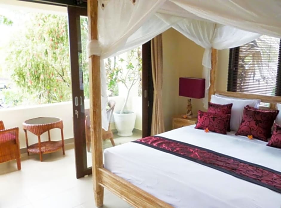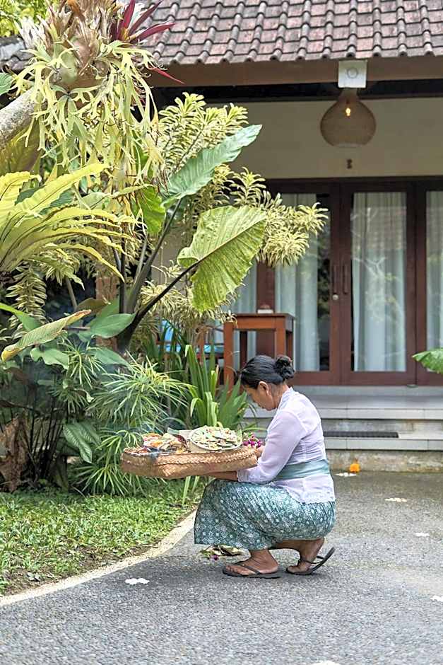 A series of lovely cottages along a beautiful garden path. They are separated from one another so noise is not an issue. The cottage is spacious and so is the bathroom. A mini bar is stocked with all items included in the room price (not free refills FYI). They have umbrellas to use if you get caught in the rain. The bed and mosquito net are a delight. The pool area is lovely, however if you are in cottages 5 and 6 there is a decent walk up to the pool area (the upside of these cottages is you are away from the road!) The staff tending to the rooms were always super friendly and polite. They bring and light mosquito coils at night if you're outside your room. If you don't have dietary requirements I believe you can have breakfast brought to your room, however we require gluten free so ate at their restaurant Gluten Free on Bisma with a discount.