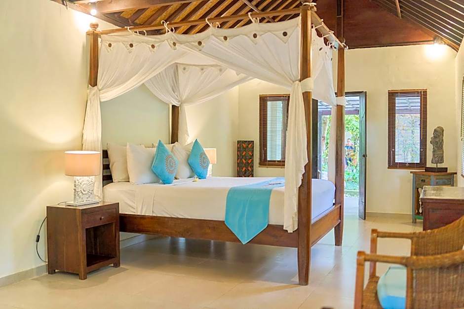 Overlooking the garden, this bungalow has an open plan Balinese style. It's fitted with air conditioning, mosquito nets, a safety deposit box and mini-bar. In-room service and a beautiful shared pool with sunbeds are also available. The private bathroom comes with a walk-in shower, a separate bath tub and free toiletries.