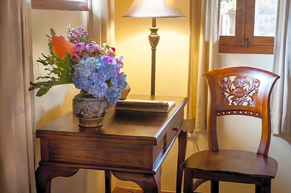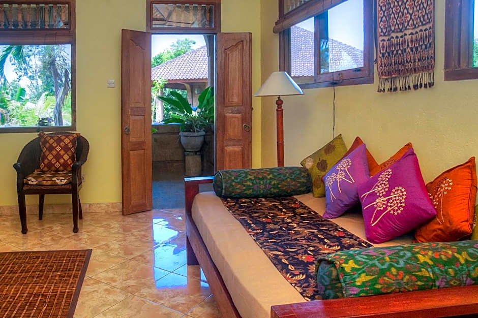 Located on the upper level, the air-conditioned room has a queen size bed and a single sofa bed. The room has a ceiling fan, a personal safe, and a mini-bar. En suite open air bathroom comes with a shower.