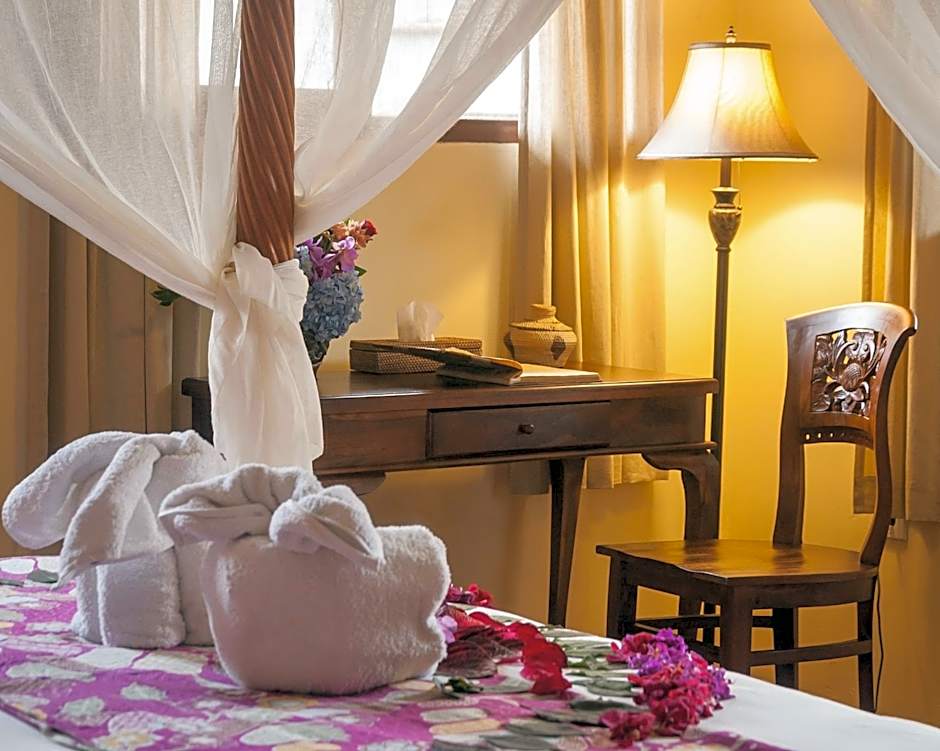 Located on the ground level, the air-conditioned room has a 4-poster king size bed and a single bed. The room has a ceiling fan, a personal safe, and a mini-bar. The en suite outdoor bathroom comes with a shower and a bathtub.