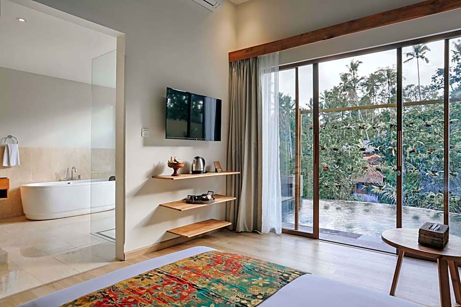 The Sebali Resort offers One-Bedroom Villas with private pools and stunning views of either the valley or the river. These villas have a generous size of 1076 sqft and are non-smoking. Each villa can accommodate 2 adults and features a queen-size bed.