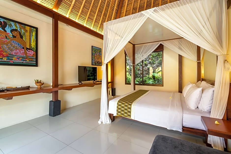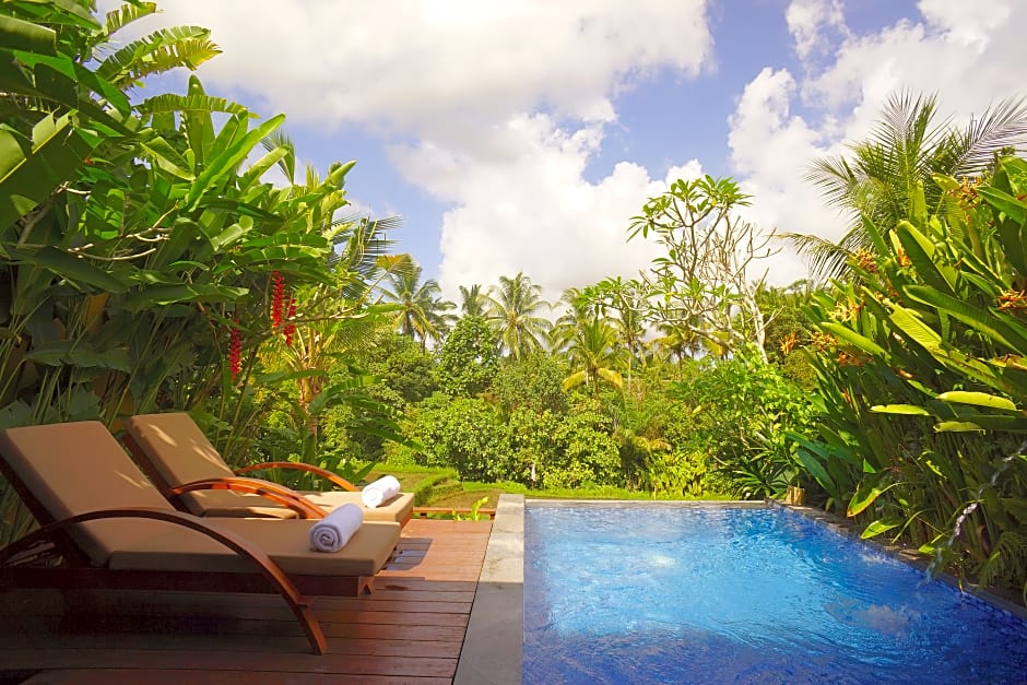 This villa features a private pool and an outdoor spa bath. Comes with a kitchenette, a separate living room and a dining area. Villas have either views of the rice paddy field or the garden. The standard occupancy for this villa is 2 people, but 1 additional guest can stay on the sofa bed in the living room to be an extra bed. Guests enjoy: - Free scheduled shuttle service to Ubud - Free WiFi Floating breakfast is provided upon request.