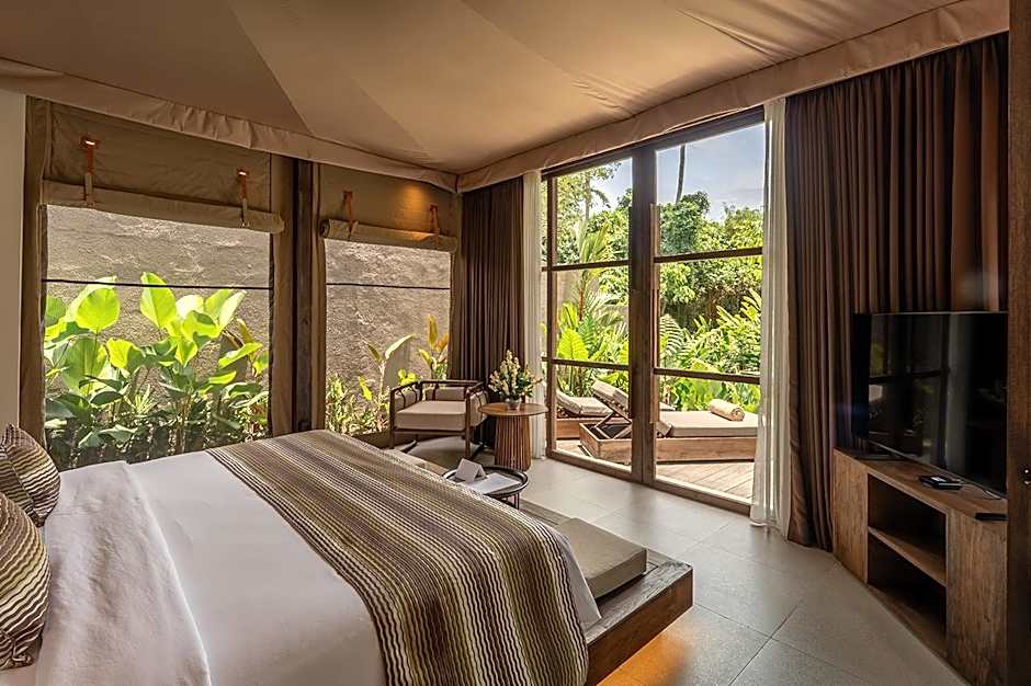 is a 5-star escape in Ubud, Indonesia, about from the city center. Address: Jl. Arjuna, Banjar Abianseka, Mas, Kecamatan Ubud. Situated in the Mas area, this glamping retreat blends luxury with nature for a memorable stay. Minimum price data not listed.