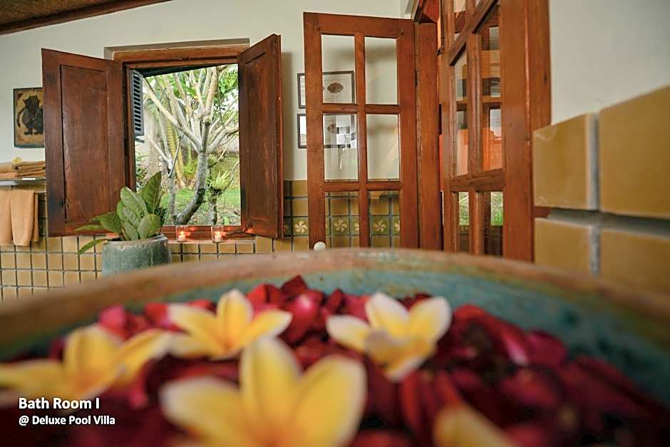 Spacious villa features a private swimming pool and well-equipped kitchen. Surrounded by tropical gardens, it also comes with an open plan dining area and a living area with beautiful Javanese-style interiors. The private bathrooms provide a bathtub, shower and free toiletries