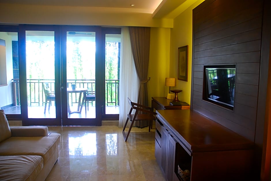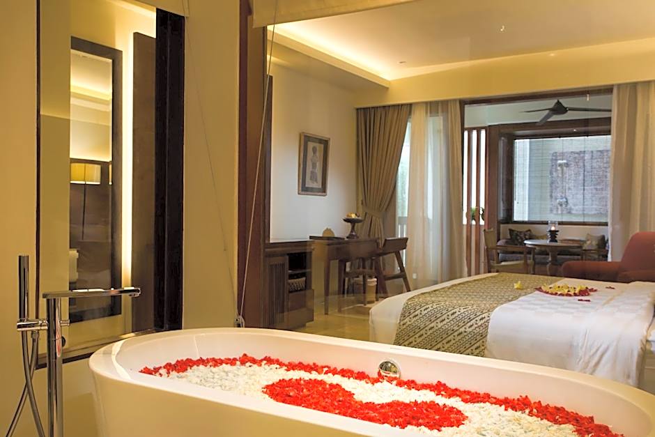 Overall, guests at the Ubud Village Hotel can enjoy a range of leisure amenities including spa treatments, swimming pools, and a choice of dining options.